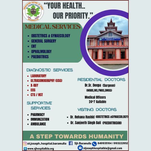 Inspired by the healing ministry of Christ, St. Joseph’s Hospital is committed to serve ailing humanity with compassion and respect, irrespective of all religion, caste or economic condition and to serve the needy beyond the boundaries.